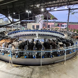 Ideal para grandes lecherías, este sistema automatizado permite ordeñar un alto número de vacas en menos tiempo. Las vacas suben a una plataforma giratoria donde son ordeñadas mientras el carrusel rota, optimizando la eficiencia, el confort animal y el flujo de trabajo.